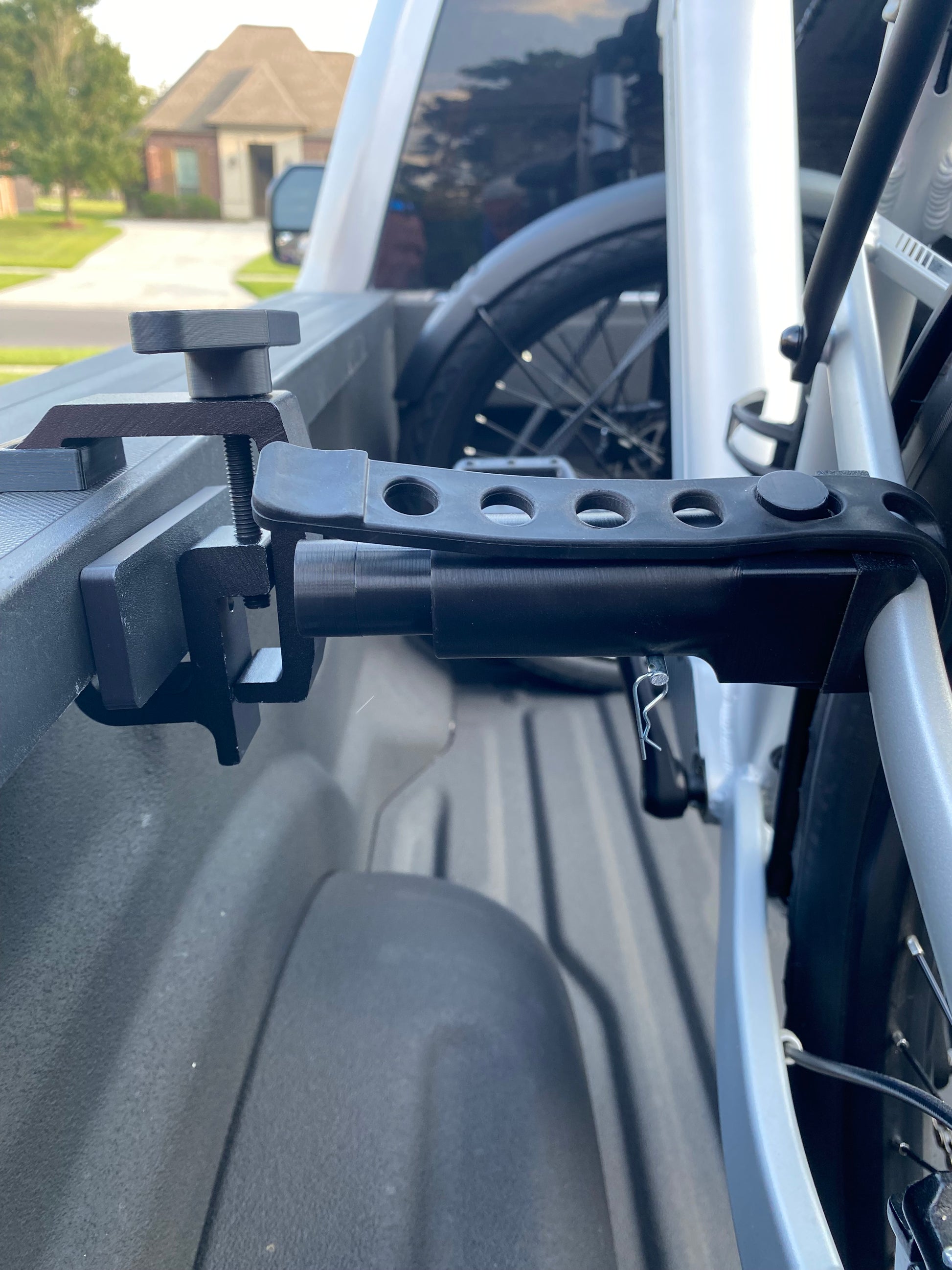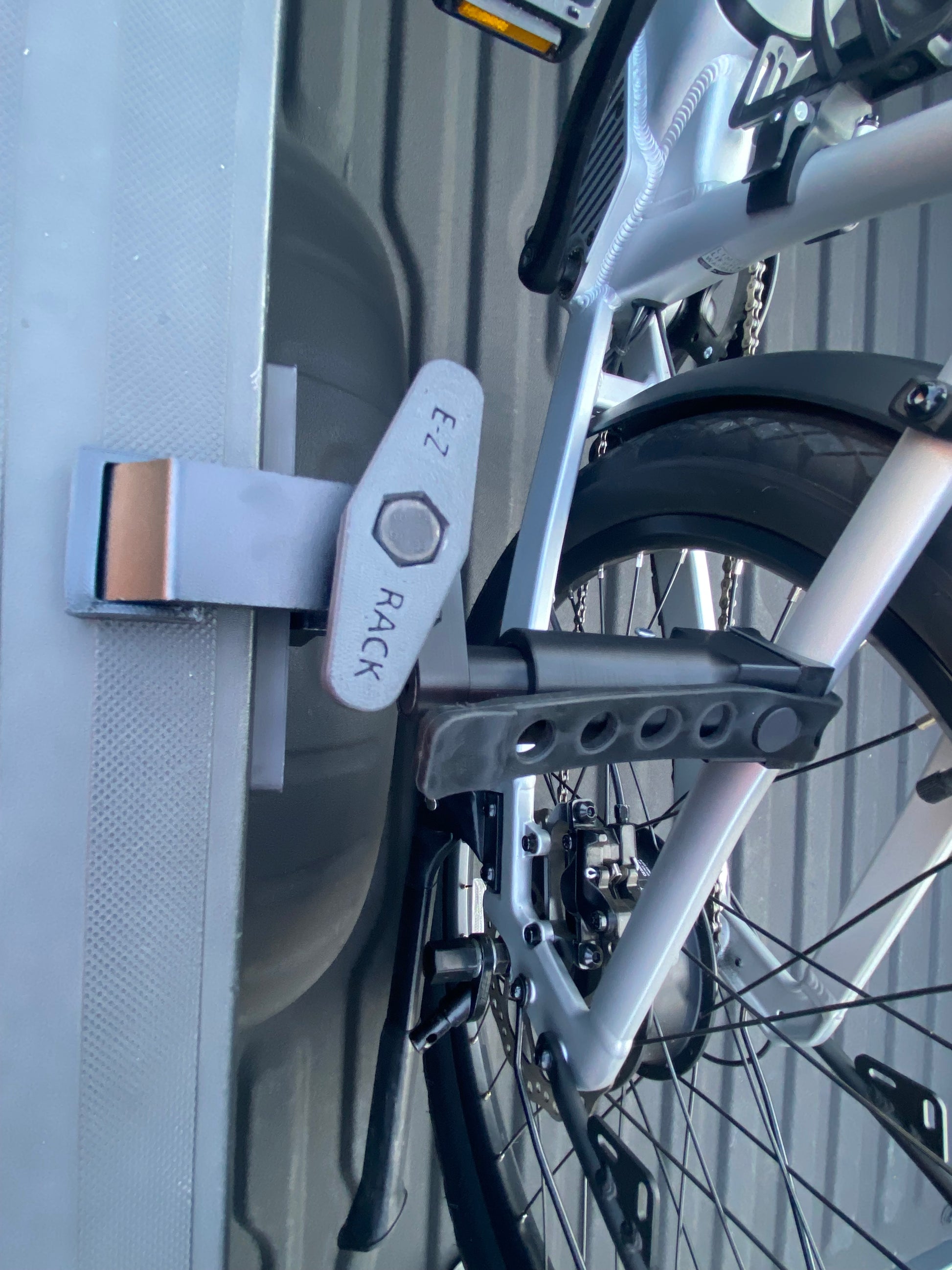 E-Z Rack Truck Bed Bike Clamp Lightweight. Compact. Built to Last.The E-Z Rack Truck Bed Bike Clamp is the easiest way to secure your bike in your truck bed without the hassle of heavy racks or tangled straps. Made from high-strength 6061 aluminum and durable ASA plastic (the same tough material used in the automotive industry), it's built to handle the elements with excellent UV resistance and mechanical strength.✅ Fits all types of bikes✅ Works with both short-bed and long-bed trucks✅ One clamp holds your bike — no need for two!✅ No complicated installs With its smart design, the E-Z Rack keeps your bike snug against the truck bedside, giving you plenty of room for extra gear. Whether you're towing a camper, heading out for a hunt, or simply hitting the trails, this rack keeps your bike secure without adding extra weight or bulk to your setup.Compact and easy to store — fits under your back seat or even in your center console when not in use.Proudly made in the U.S.A. Questions? Not sure if it’ll fit your setup? Feel free to reach out — I'm happy to help!